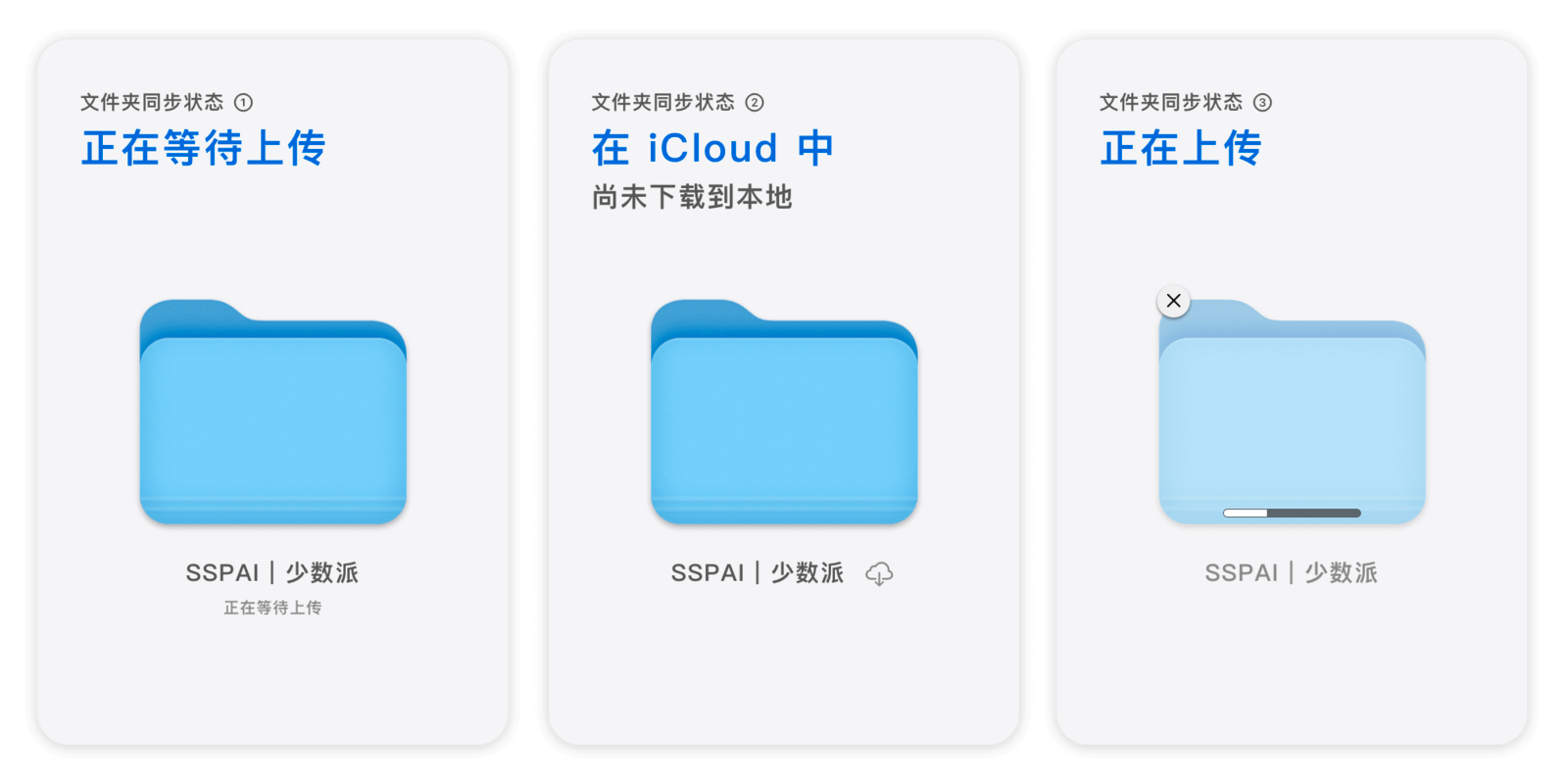 你可以在「iCloud 云盘」中查看所有 iCloud 文件,包括那些开启了 iCloud 同步的应用所生成的同步文件。如果你想创建一个能同步到所有苹果设备的文件夹,就应该在「iCloud 云盘」下新建。