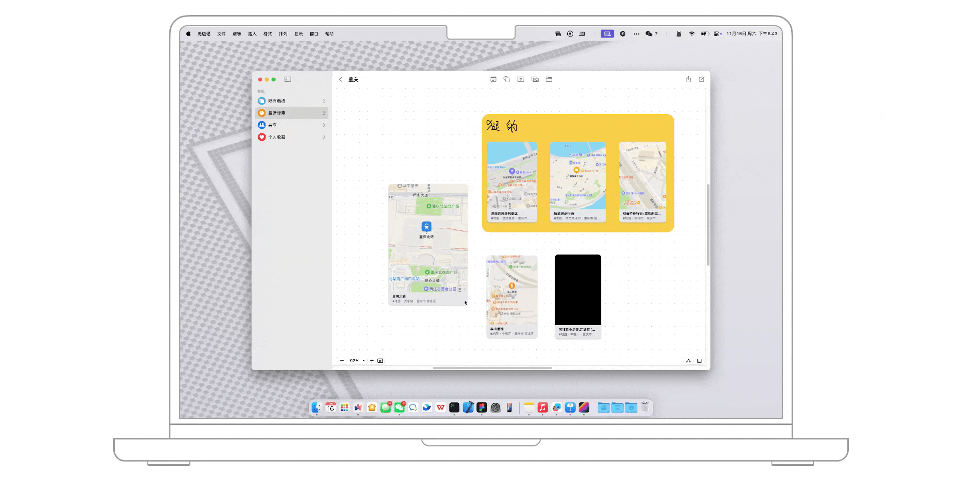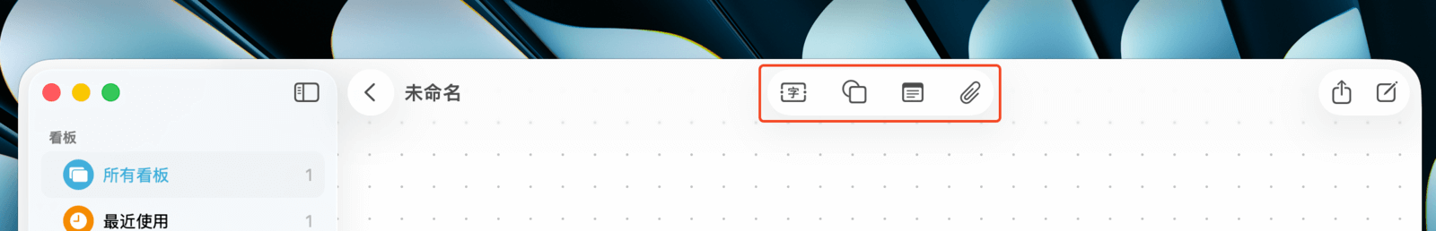 这些内容选项的用法你一定很熟悉,此处不再赘述。所有插入画布的元素都可以在无边记中自由地移动、更改尺寸、调整方向以及更改颜色,给了你很高的创作自由度。