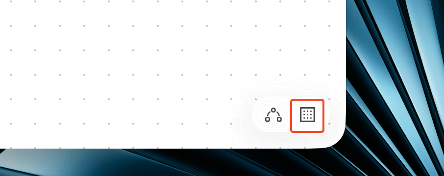 在画布的右下角,无边记 App 提供了一个网格线开关按钮,点击即可让画布背景在有网格线和无网格线之间切换。网格背景可以帮助你在移动形状、文本、图片等对象时更方便地对齐或摆放到特定位置。