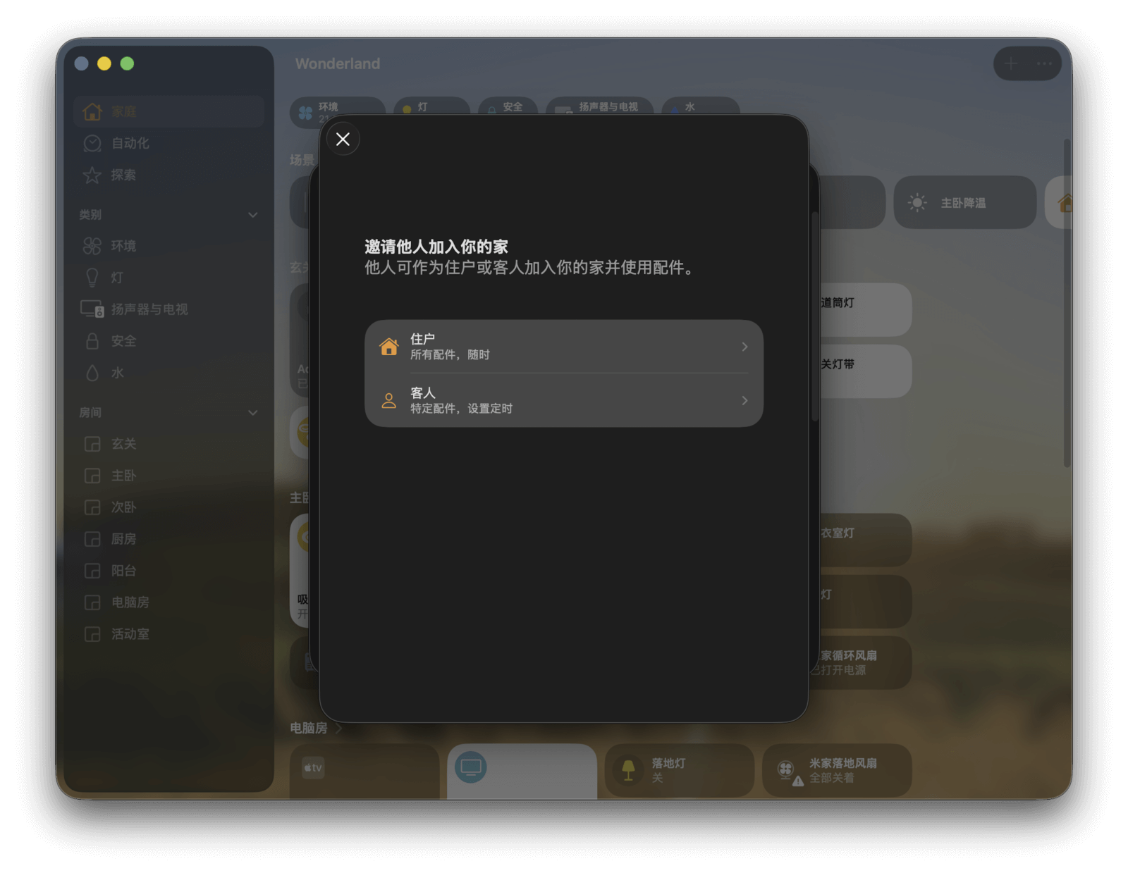 另外,如果你有多套住宅,记得切换到对应的家庭再进行邀请,步骤与上文一致。
