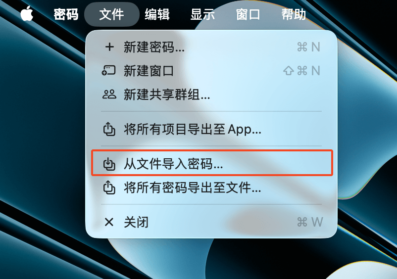 如果你想导出密码 app 中的所有密码,在菜单栏中选择「文件 > 导出所有密码…」,就能以「.csv」格式导出。请注意,导出的文件包含密码明文,务必妥善保管,以防泄漏。