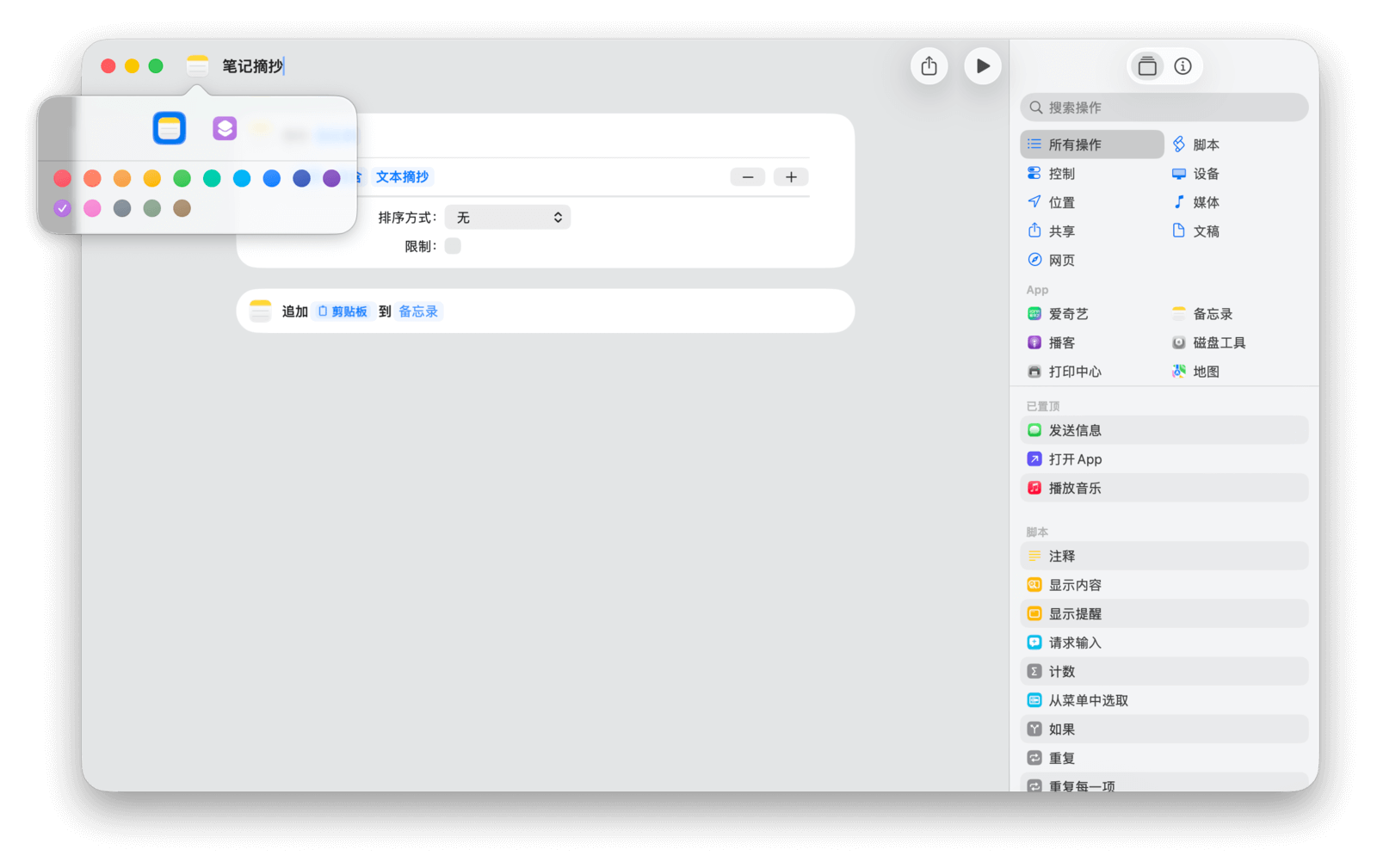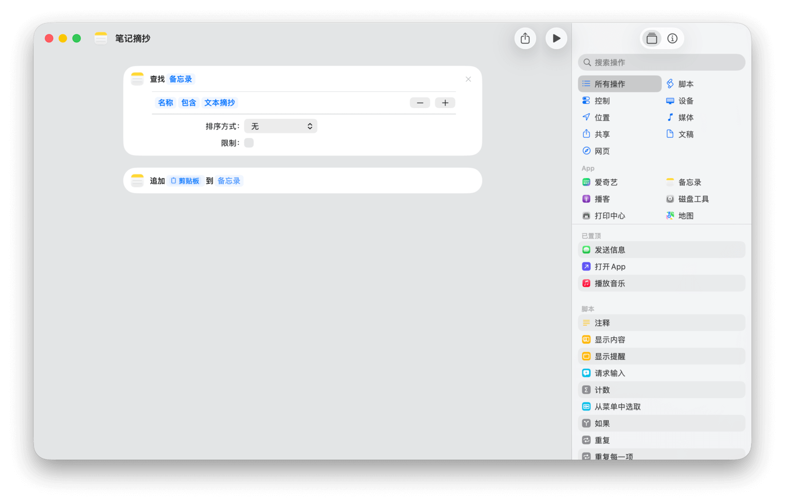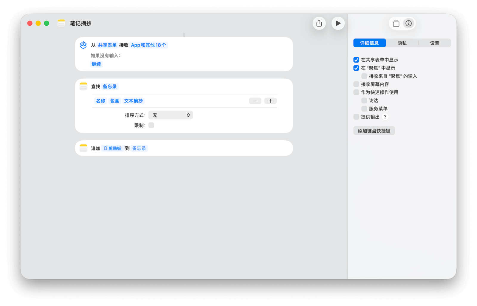 这样,一个简单的「笔记摘抄」快捷指令就完成了。