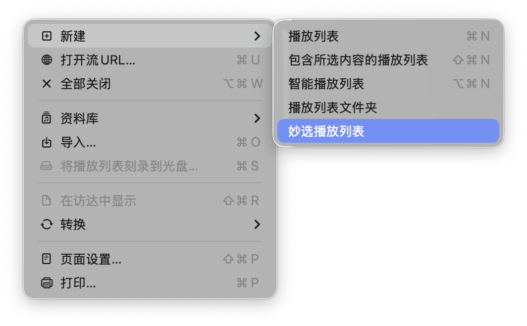要创建新的播放列表,只需点击菜单栏的「文件 > 新建 > 播放列表」,即可创建并为其添加封面和描述。