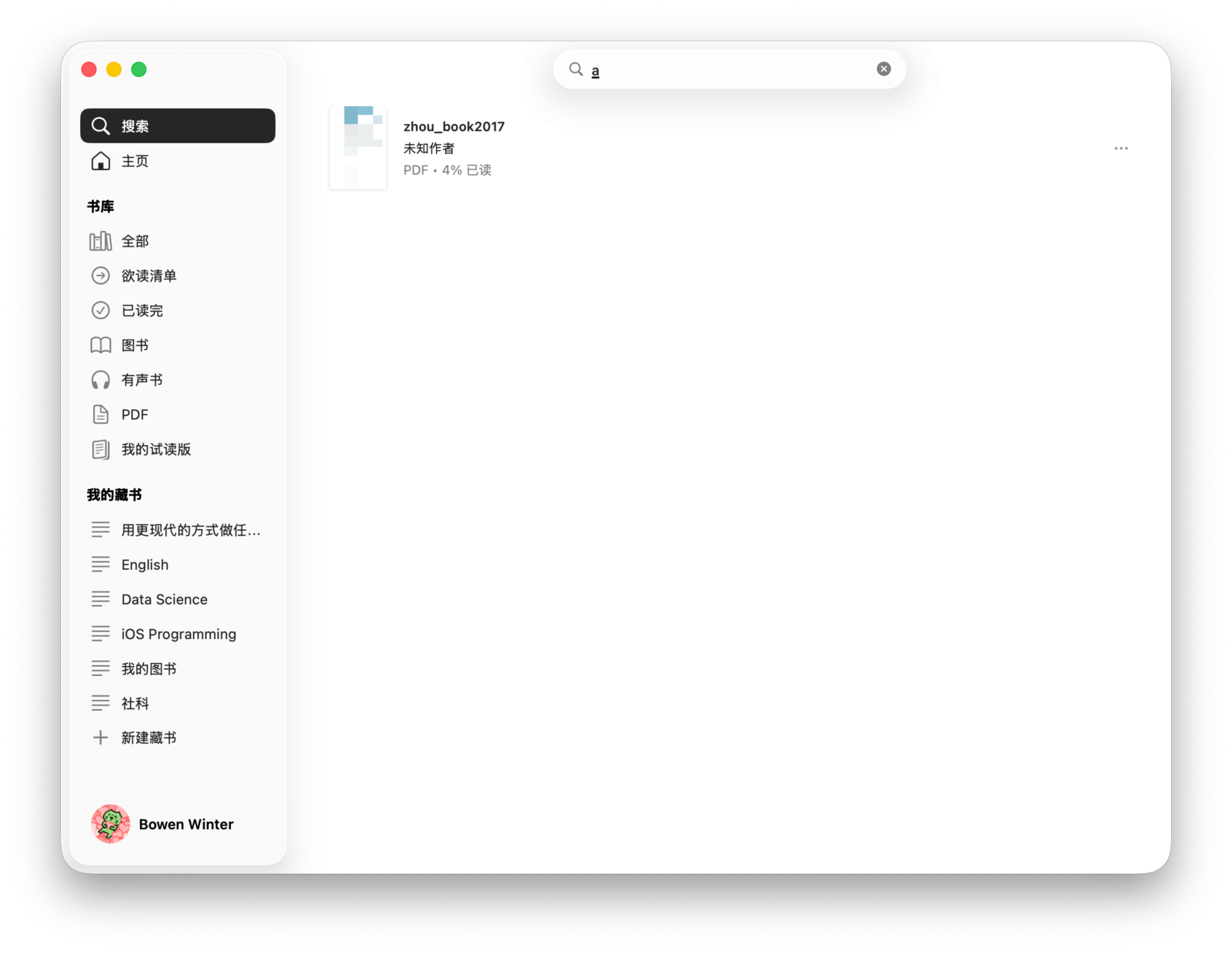 「我的藏书」则展示了你手动创建的分类,你可以将图书手动归置到这些藏书中。