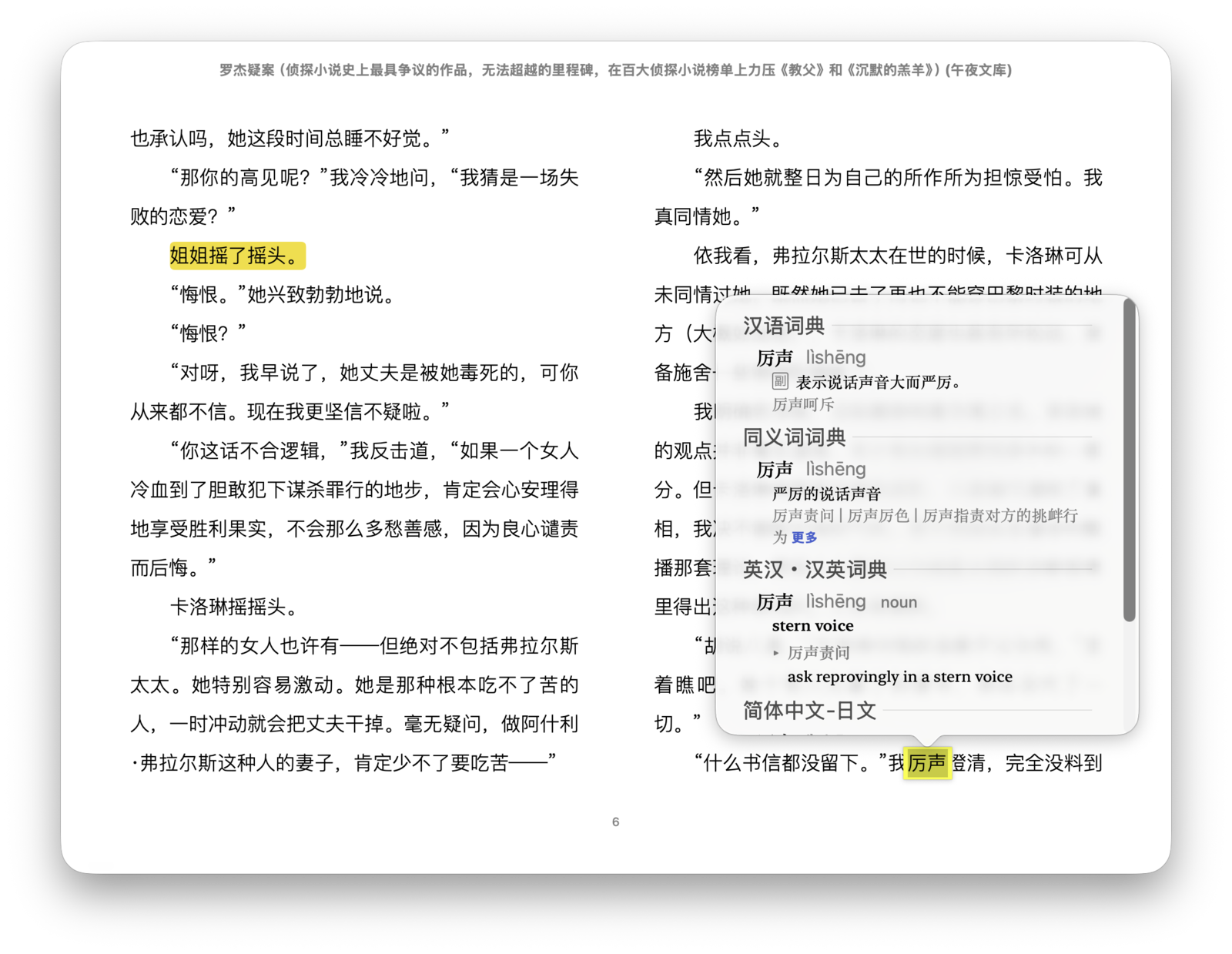 「图书」应用内置了苹果词典与翻译功能。阅读时选中不熟悉的词汇,点击「查询」或「翻译」即可查看释义。如果你使用 MacBook 或妙控板,也可以通过重按点按操作直接查询所选单词。