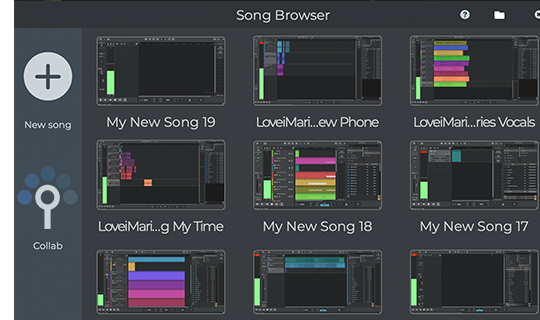 n-Track Studio 将云存储和音乐协作功能集成到您的 DAW 环境中。内置的 Songtree 应用让您可以与他人在线合作创作音乐:邀请其他音乐人加入您的项目,或为他人创作的歌曲贡献力量。您还可以将无限量的混音文件免费存储在 Songtree 上。