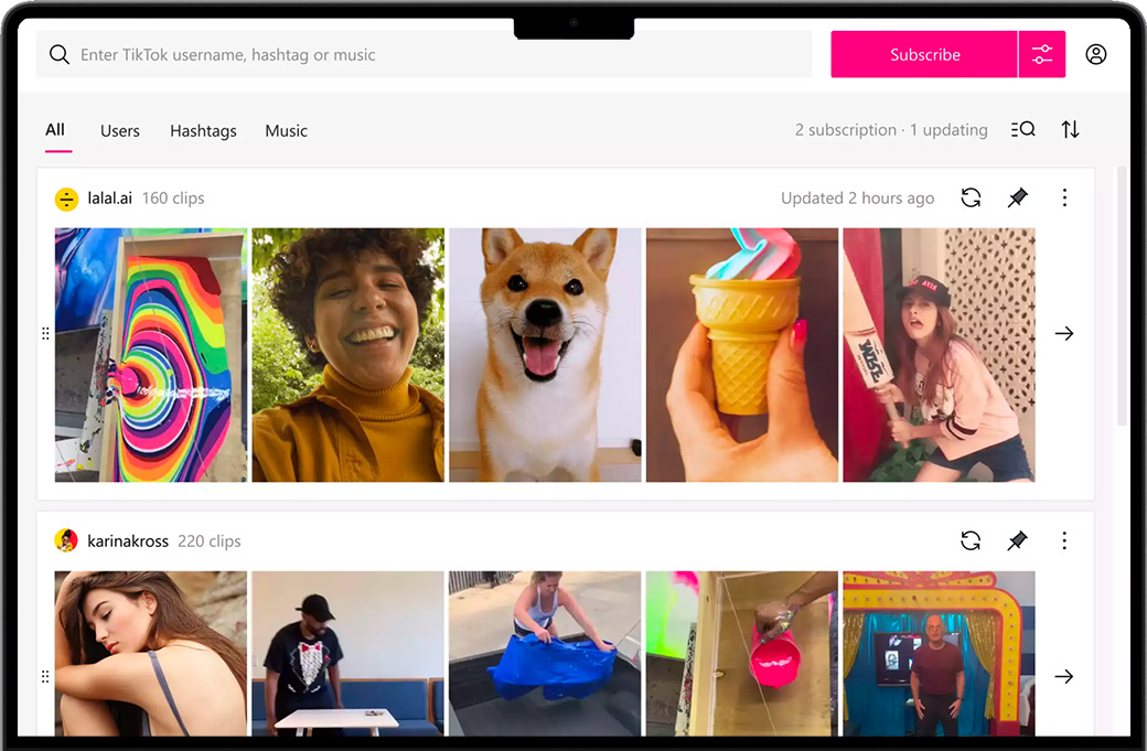 | 从TikTok下载内容 4K Tokkit是终极TikTok下载工具。下载高质量的TikTok挑战、字幕、完整帐户、标签、歌曲相关视频和单曲视频。 下载TikTok标签视频 从TikTok标签保存TikTok挑战视频和其他内容。获取MP4格式、高达720p分辨率的TikTok视频。 下载TikTok用户视频 从TikTok帐户批量下载视频。保存个人资料中的所有视频并抓取TikTok用户的头像。 备份TikTok帐户 只需单击一下,即可从您的个人资料下载每个TikTok视频。保存TikTok头像并导出下载历史记录。 4K TikTok其他功能自动下载TikTok视频 随时了解您喜爱的TikTok创建者和标签的更新。自动检查新视频,每天抓取新鲜内容,无需举手。 按日期下载TikTok视频 在应用内日历中调整下载日期范围。仅下载在指定时间段内发布的视频。 保存TikTok视频字幕 下载带有原始字幕的TikTok视频。将光标悬停在视频图标上以查看应用程序中的标题并将其复制到剪贴板。 下载有相同音乐的剪辑 抓取与特定音频相关的所有TikTok视频。输入歌曲名称以开始保存以该曲目为特色的所有TikTok视频。 单独保存TikTok片段 一次保存一个TikTok视频。输入TikTok视频的链接,并将其作为单个文件下载到您的计算机。 访问私人内容和推荐剪辑 保存推荐给特定TikTok用户的视频。从您关注的私人TikTok帐户下载视频。 更改TikTok位置 浏览和下载在其他地理区域流行的TikTok视频。使用内置代理设置切换到其他国家/地区。 |