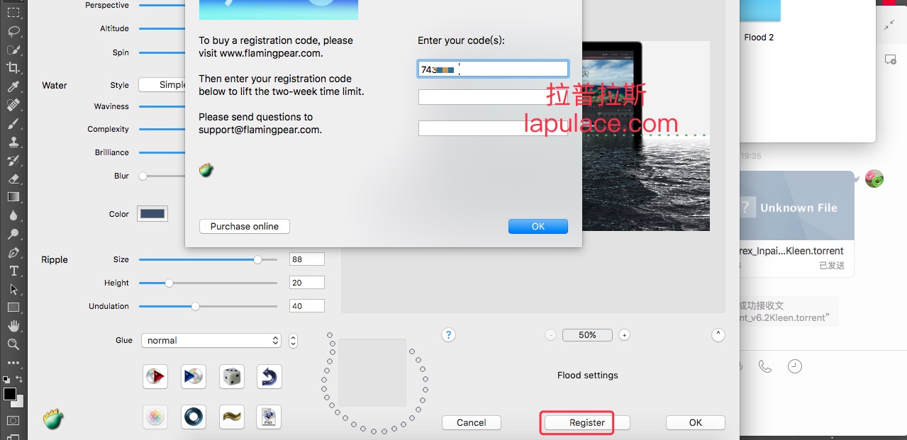 4、打开滤镜,点击右下角的register按钮,然后输入软件包中的序列号,如下图: