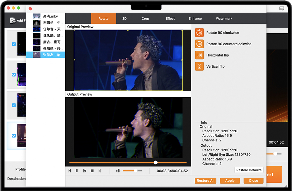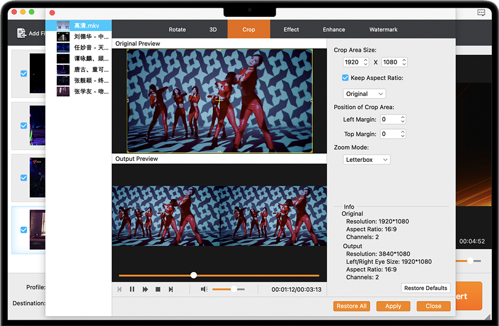 通过添加浮雕效果或拆分屏幕,将 2D 视频转换为 3D 视频。