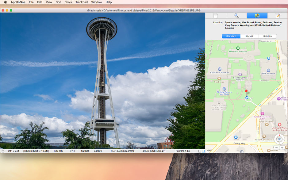 7. 地址搜寻器使用嵌在 JPEG,RAW 或视频文件内的 GPS 坐标去寻找地址。 ApolloOne 执行反向地理编码,能寻找到拍摄照片位置的地图和实际地址。