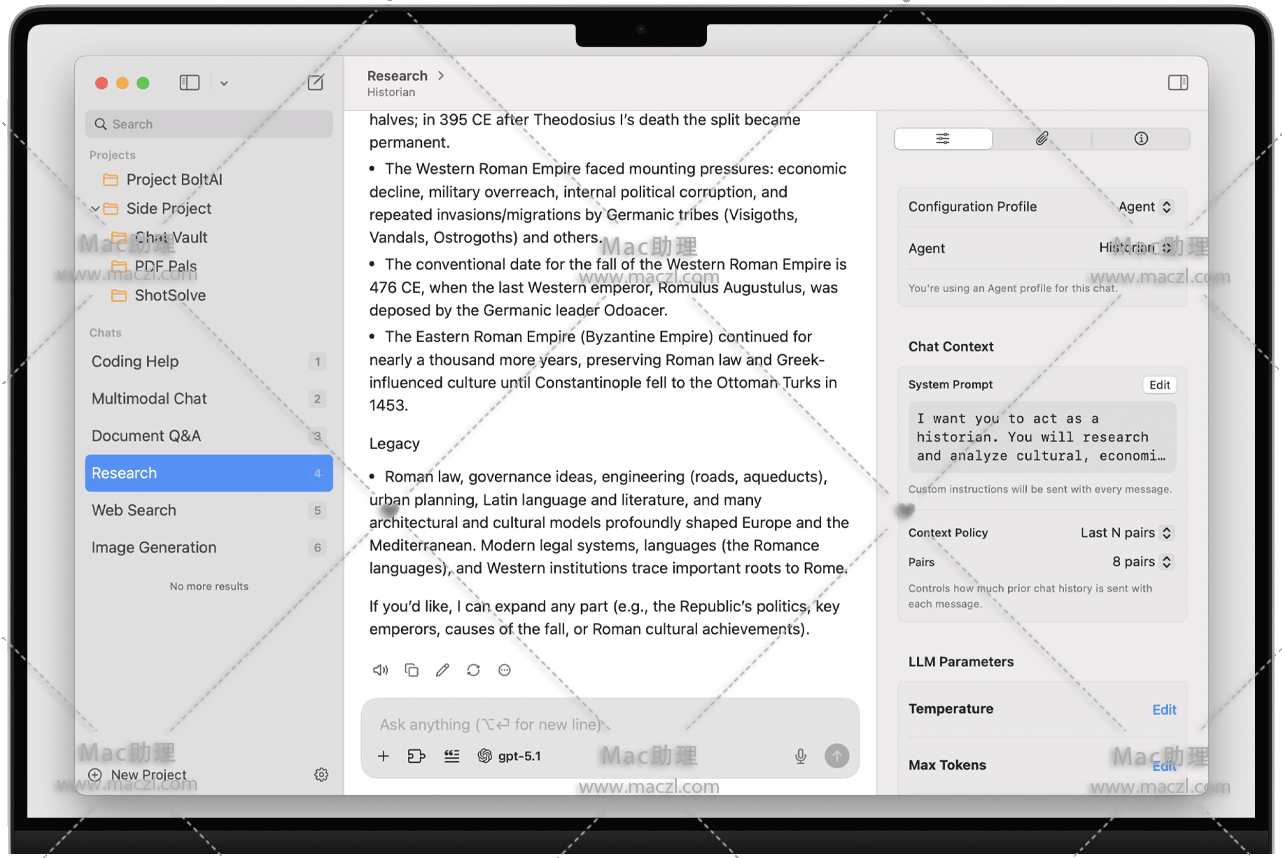 BoltAI 将专业工具、高级模型、结构化工作流程和深度自定义功能整合在一起——所有这些都融入到简洁、原生的 Mac 体验中,专为速度而打造。