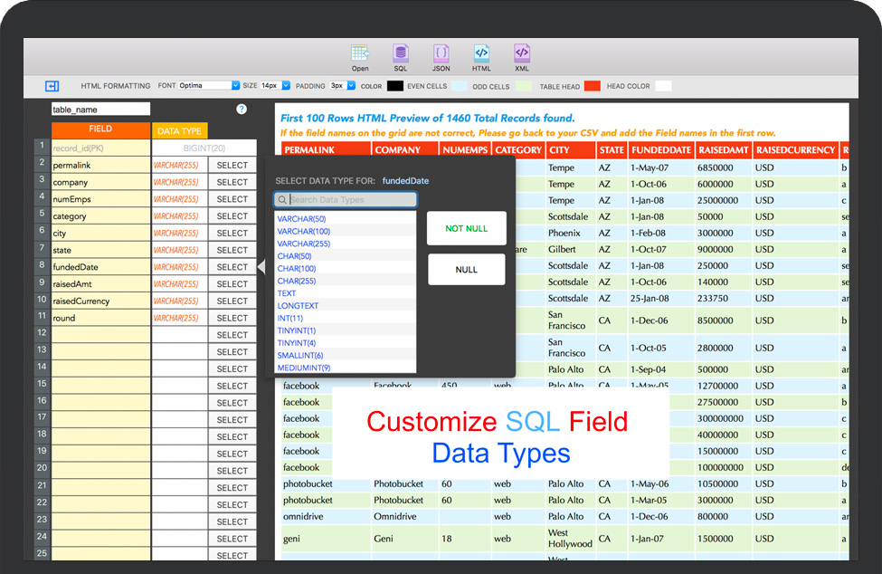-将您的CSV文件转换为SQL(对于MYSQL),XML,JSON或HTML