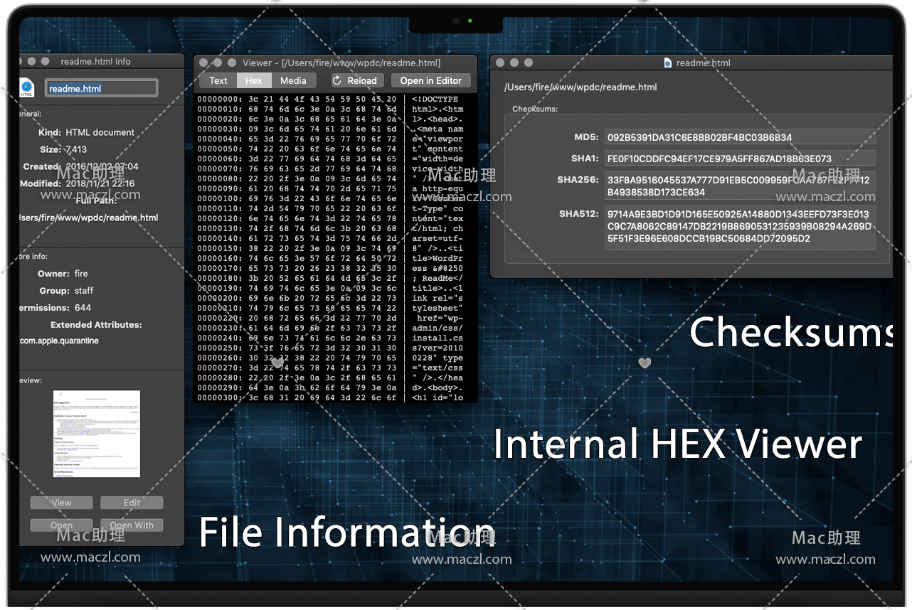 使用集成的QuickLook功能更快地查看文件。使用内部查看器查看二进制文件。