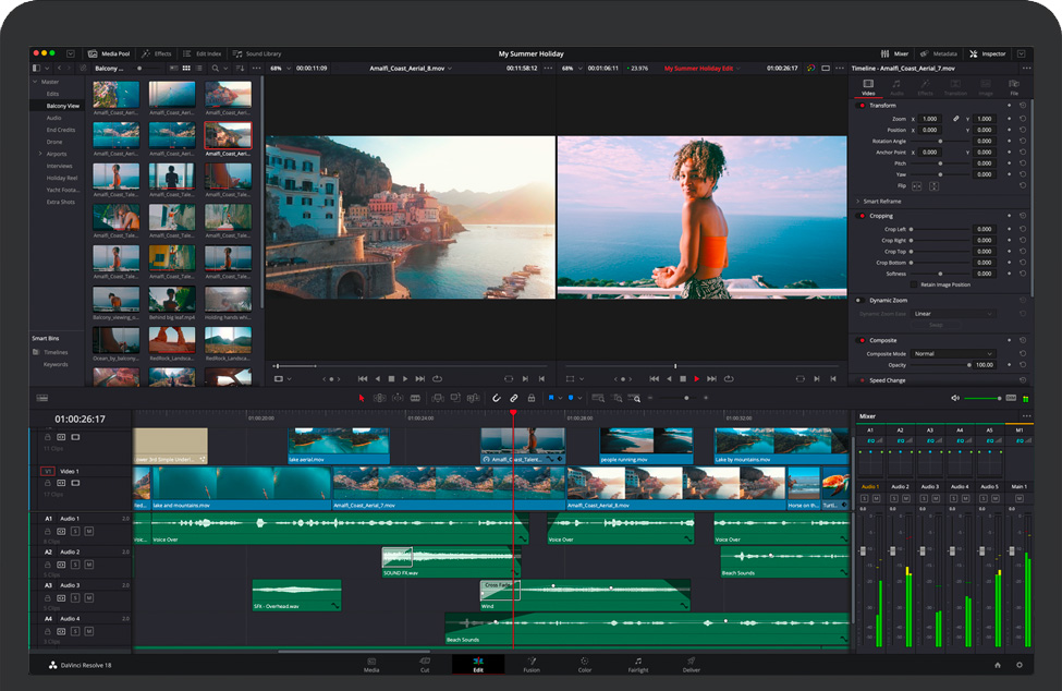 非常适合离线编辑和在线整理。您可以获得所有可想象的编辑和修剪工具、堆叠和选项卡式时间表、多摄像头、闭路字幕和字幕工具、屏幕注释、更快的项目加载、二维和三维标题模板以及数十种其他新功能!