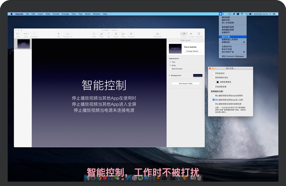 Dynamic Wallpaper for Mac 是一款非常火的超高清4K动态壁纸,让您可以每天享受来自全球新鲜精美的动态壁纸!Dynamic Wallpaper 拥有900+精美视频素材,让您一键下载即可应用,也可导入本地视频,同时可以将视频设置为您的电脑屏保,非常好用!