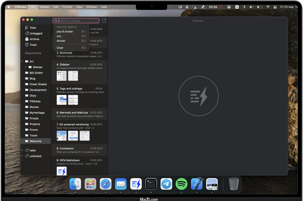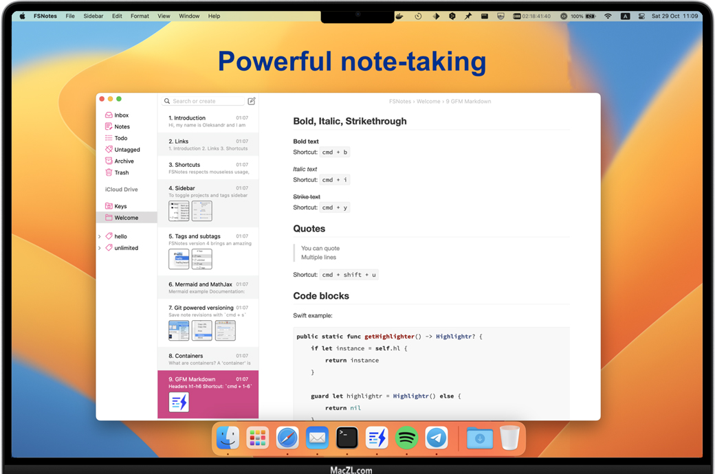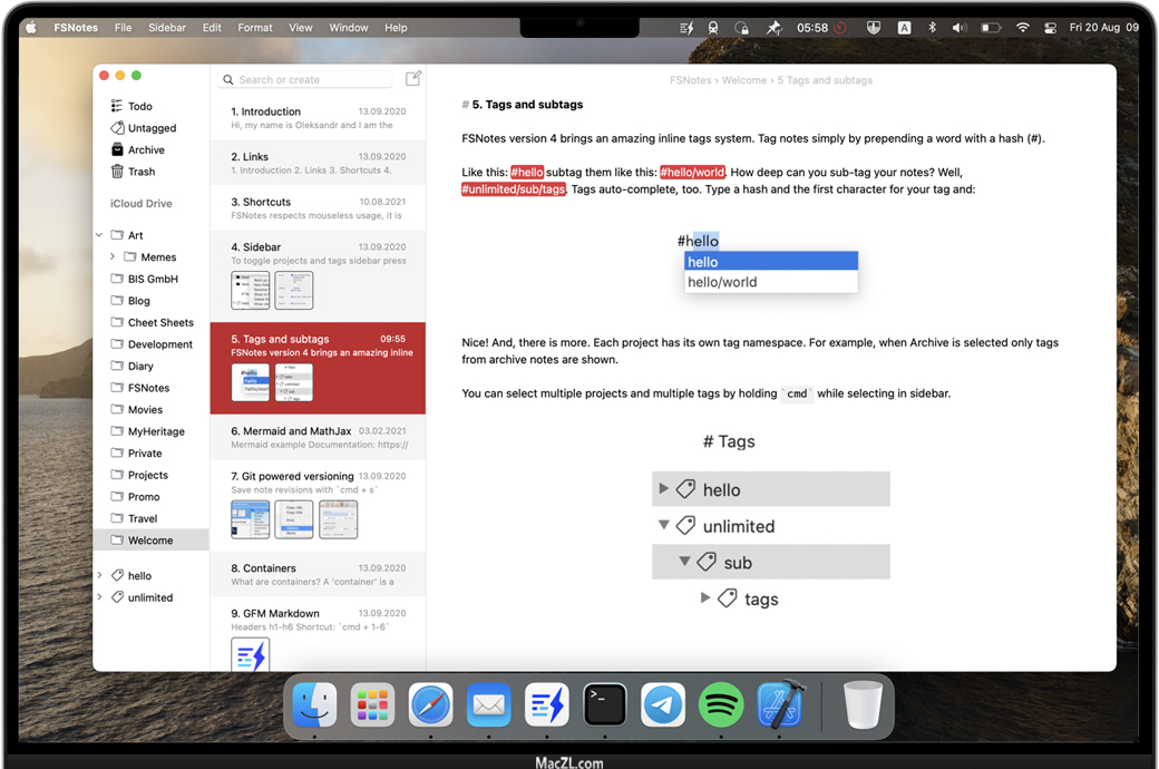 FSNotes是适用于macOS和iOS的现代Notes管理器。应用程序尊重GitHub风味Markdown之类的开放格式,因此您可以轻松地在iPhone和MacBook上编写文档。