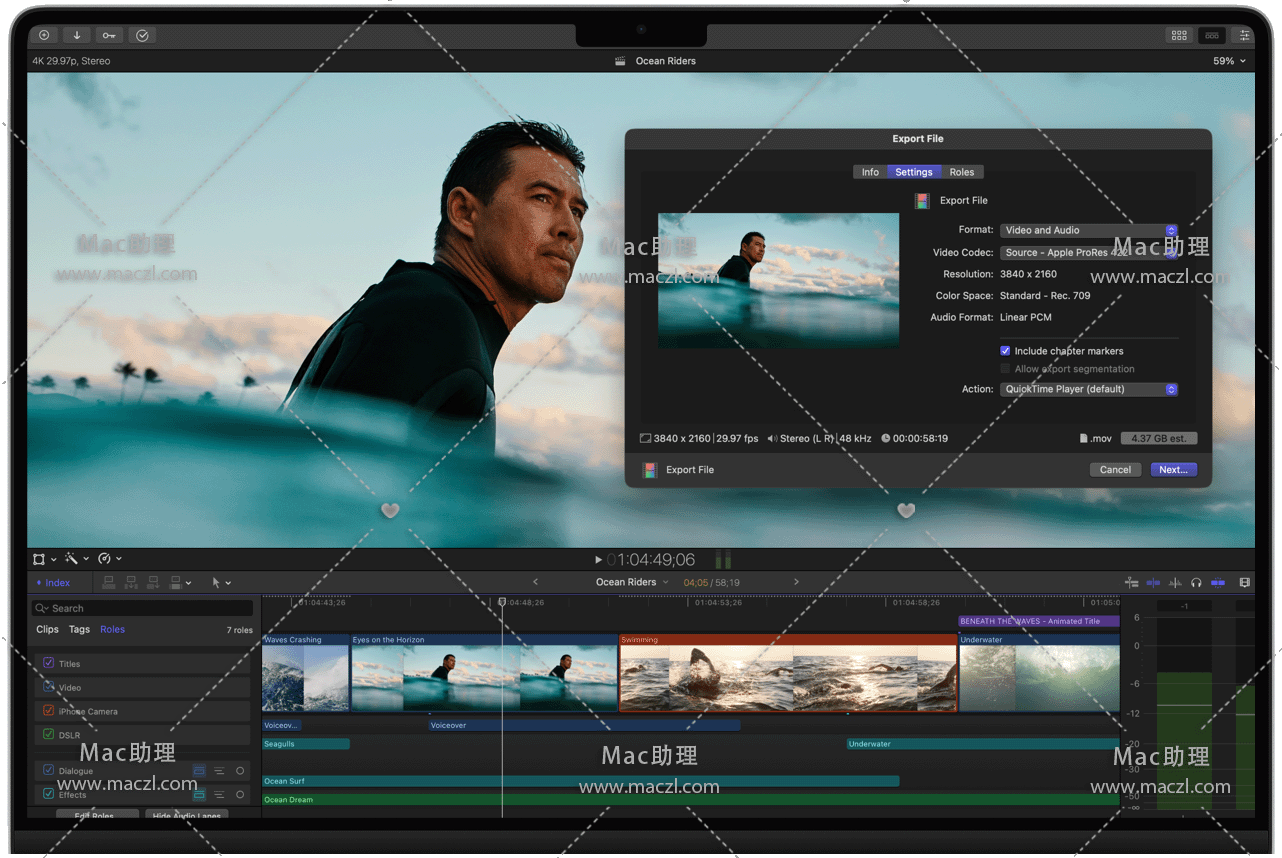 Final Cut Pro 结合了革命性的视频编辑、强大的媒体整理和惊艳的性能表现,让你的创作跟得上思维的速度。