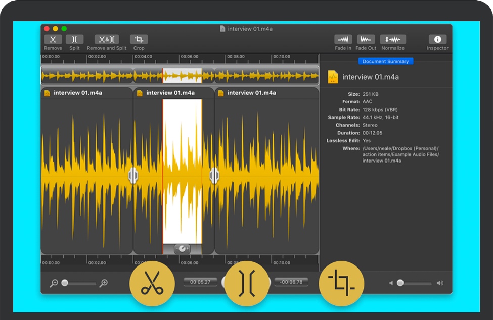 音频编辑变得简单淡入,剪切,裁剪和编辑元数据 Fission提供了您所需的所有标准音频编辑选项,唾手可得。与过于复杂的竞争对手不同,它没有混乱或膨胀。