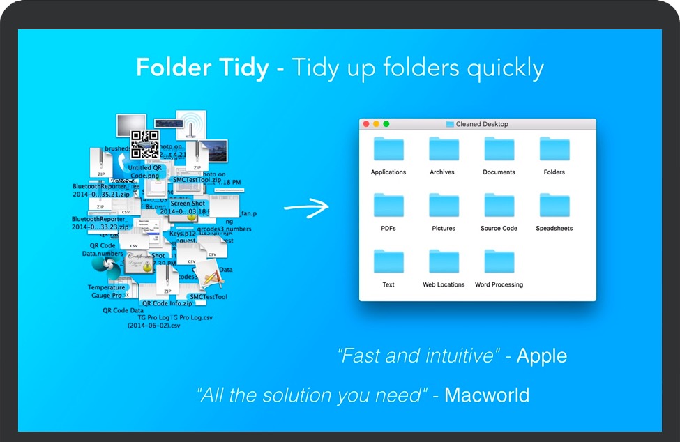 Folder Tidy 可以整理任何文件夹,无论是桌面、文档、下载文件夹,还是充满无组织文件的文件夹。只需选择要整理的文件夹和将文件分类到的另一个文件夹,剩下的就交给它了。