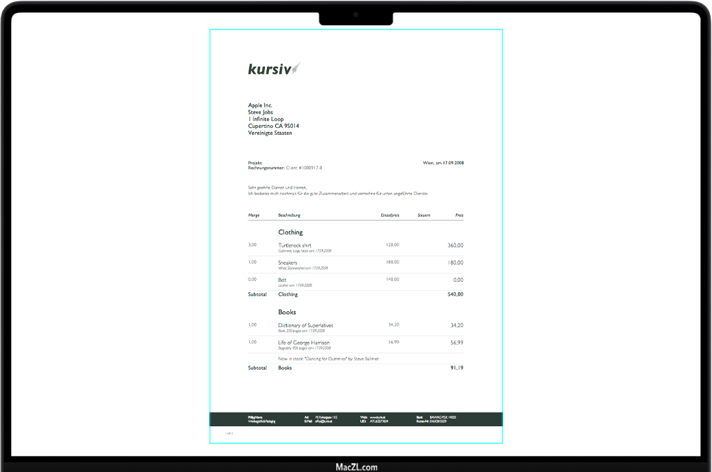 GrandTotal for Mac 是一款macOS上的发票管理软件,您可以快速创建发票和预算,跟踪未付款项目。详细的统计数据及图表展示使您可以洞悉业务的当前状态,并可以与以前的时期进行比较对帐,支持管理多家公司发票。