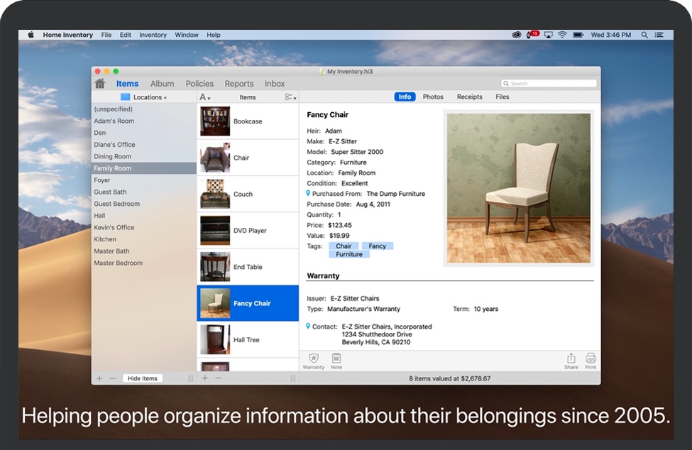 全面了解您的整个库存,了解您是否投保过多或投保不足。生成您自己的自定义报告并将其保存为 PDF 文件或打印。创建一个清单,以确保您所有的东西都从一个家搬到另一个家。