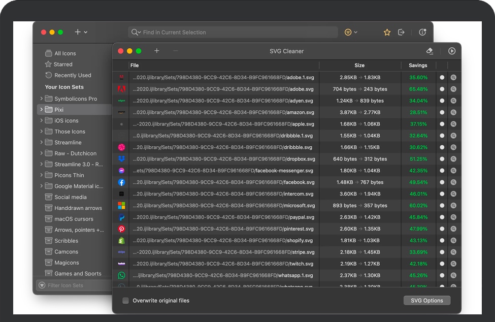使用我们的SVG优化器可以使图标投入生产。我们也有很多设置!