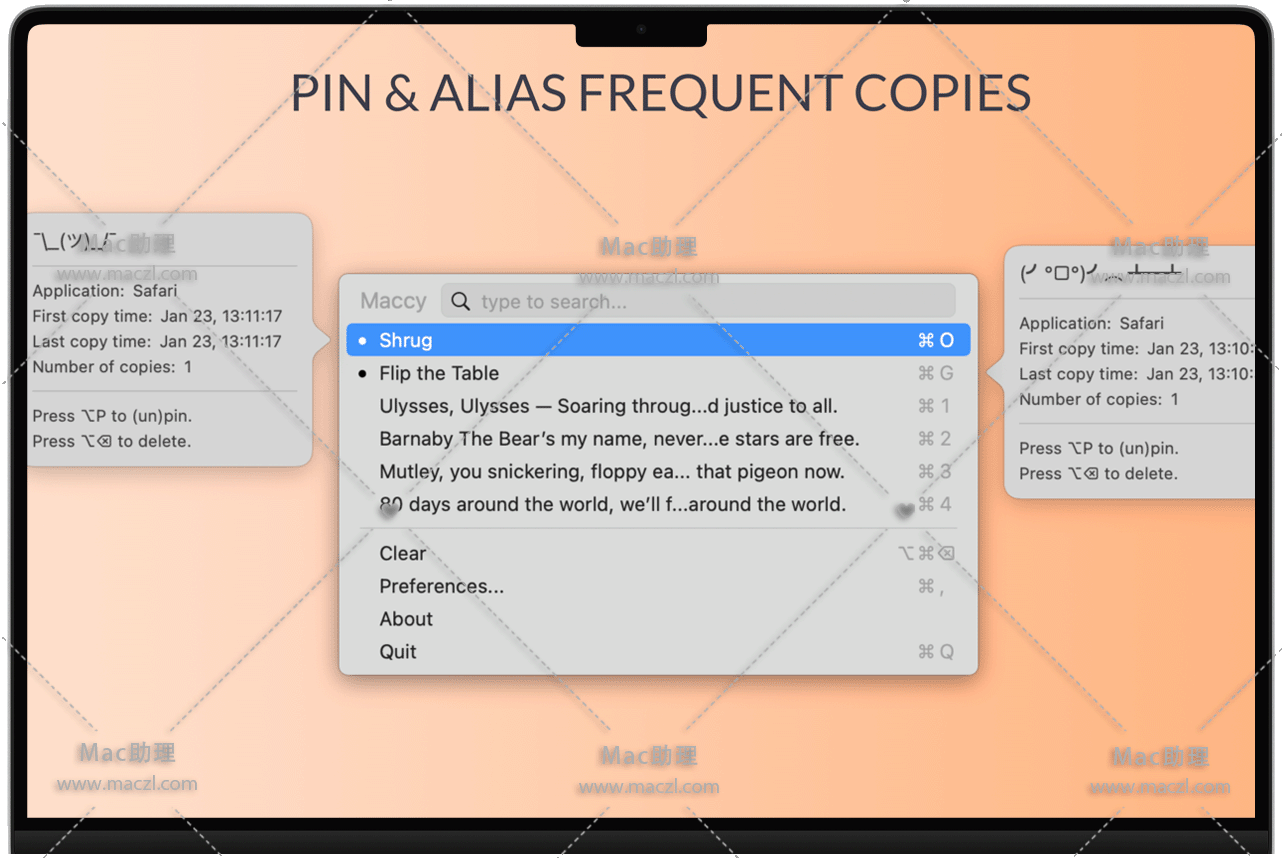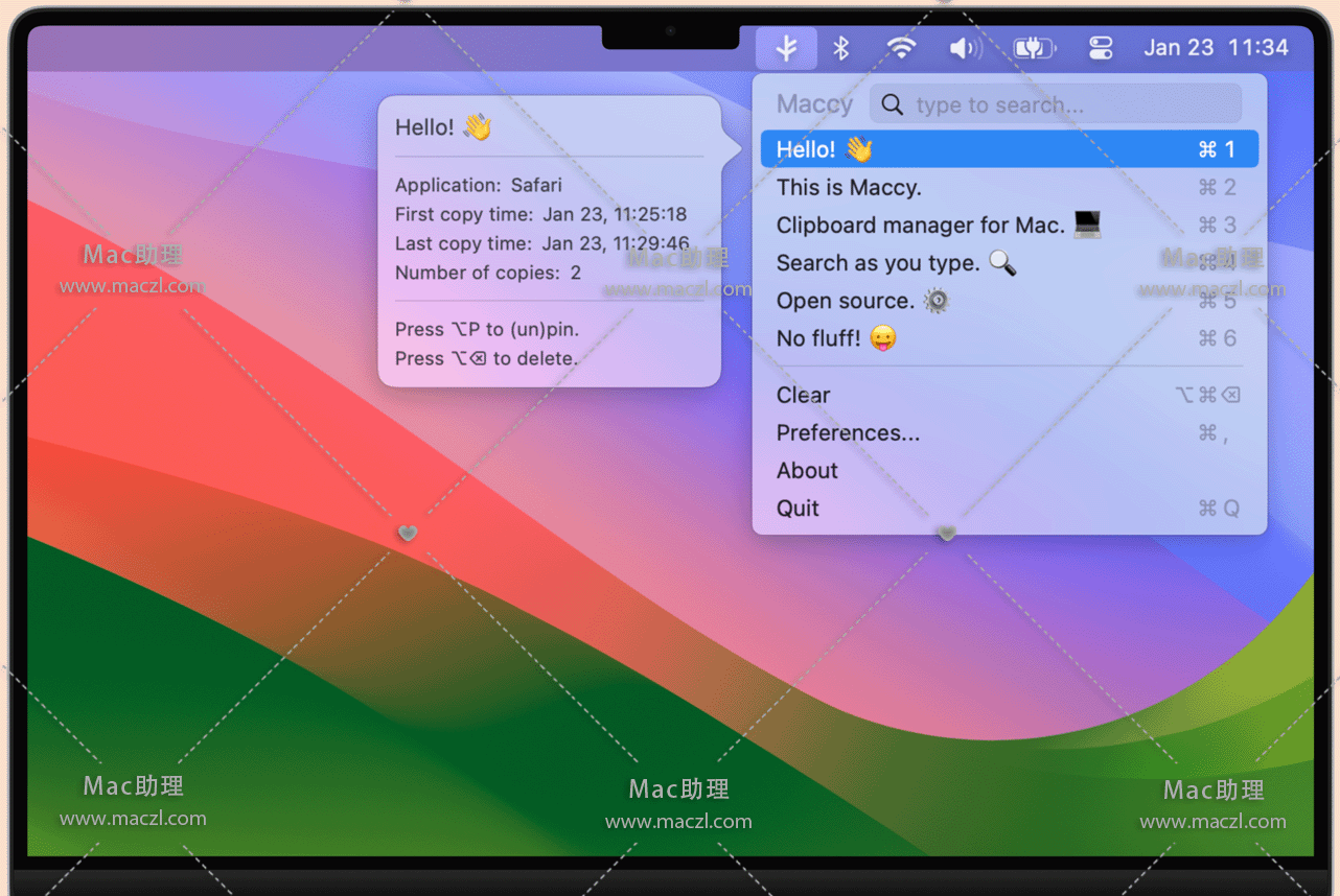 开源免费Maccy 是一款采用 MIT 许可证的开源应用程序。它现在是,将来也永远是免费的。它的完整源代码可在GitHub上获取。您可以随意查看或修改它。 |