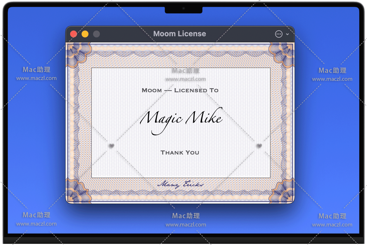 安装完成后,鼠标选中右边的许可证【许可证】文件并右键,然后选择“打开方式”→ “Moom(默认)”打开即可。