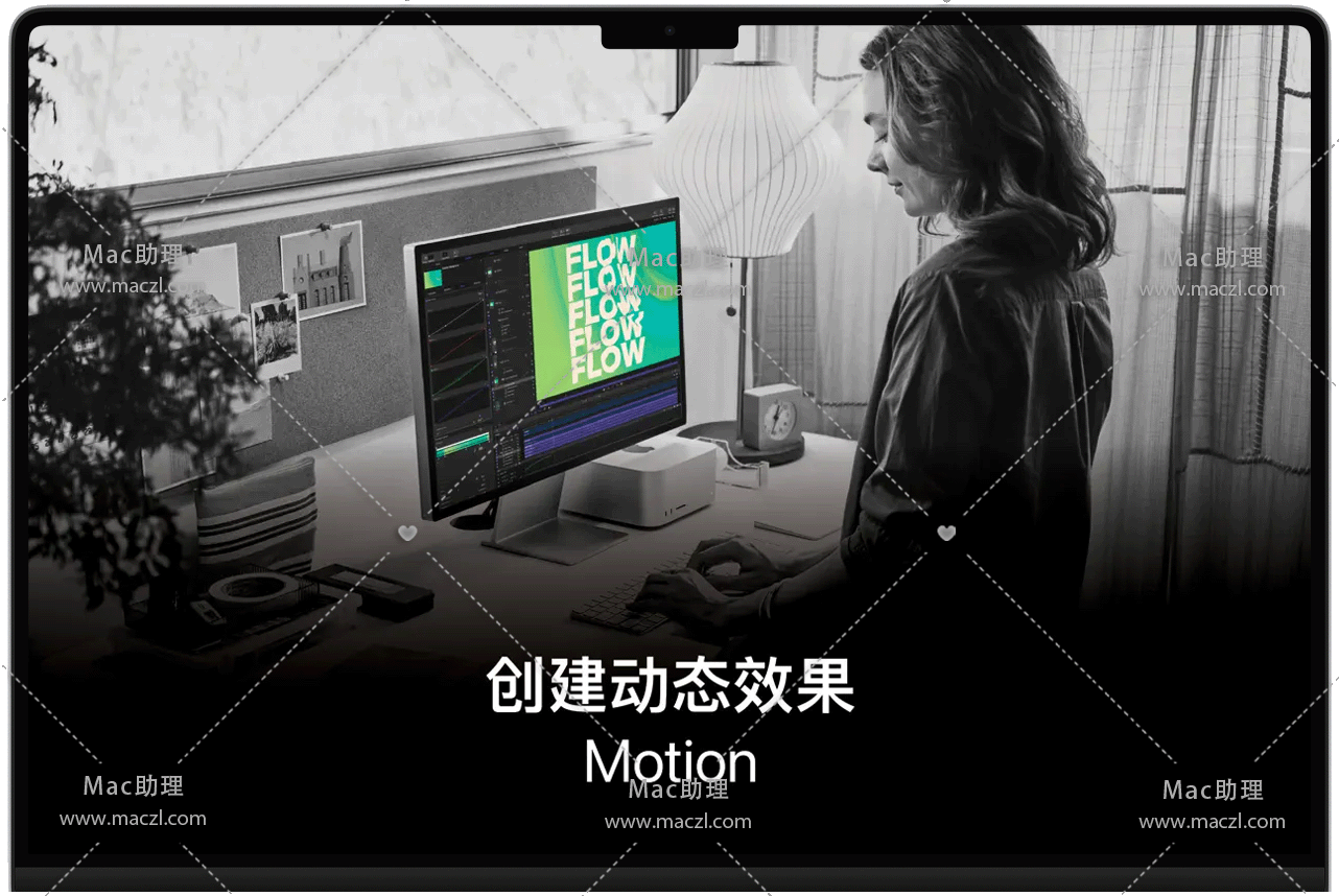 Motion 是一款为视频编辑人员设计的强大运动图形工具,可让你轻松实时创建影院级别的 2D 和 3D 字幕、流畅的转场和逼真的效果。