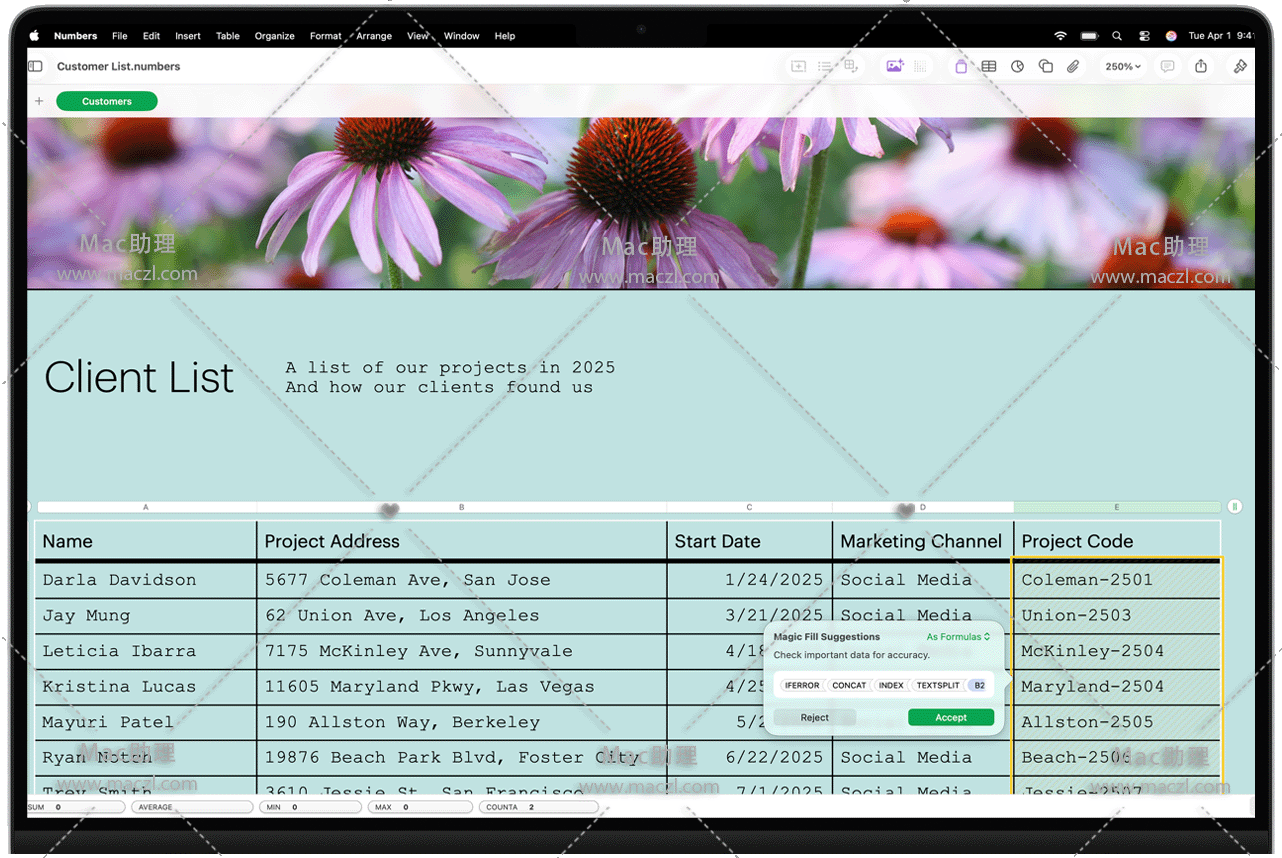 - 使用魔法填充基于模式识别建议数据或生成公式