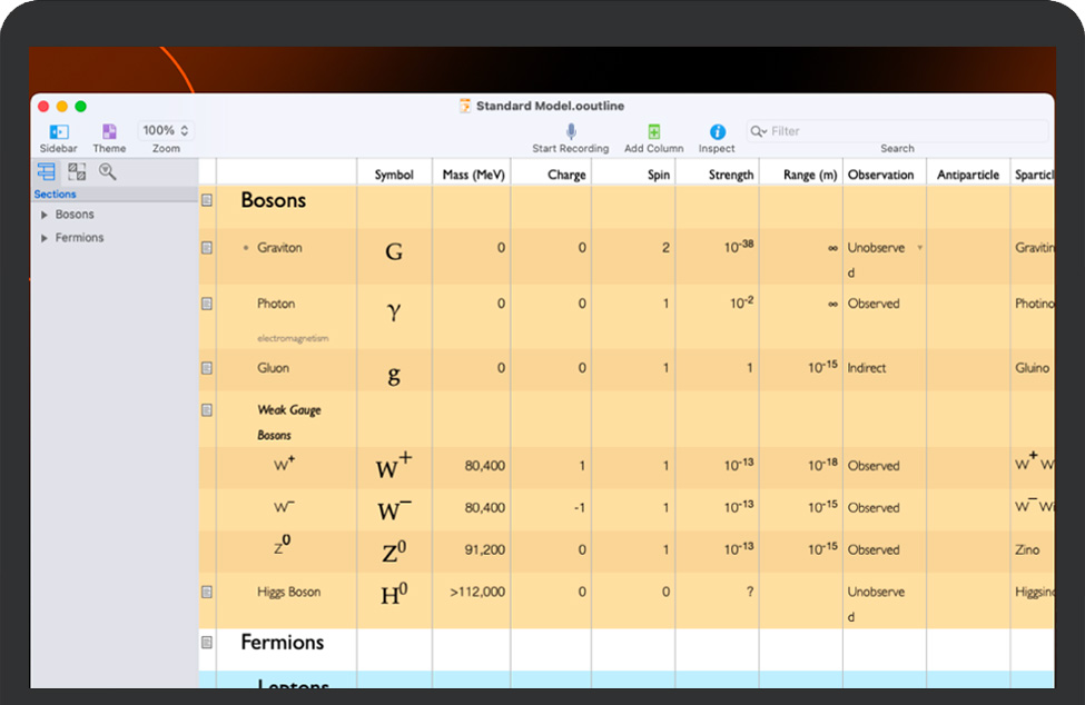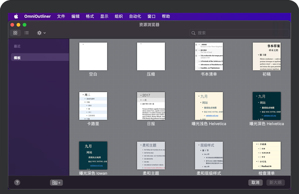 OmniOutliner Pro 5 Mac 是一款零活、简约,专为创建、收集和组织信息及想法而打造的工具。OmniOutliner 简洁好用 - 其中含有您入门所需的一切。Pro 版加入了智能列、密码保护、键盘快捷键等众多强大功能。