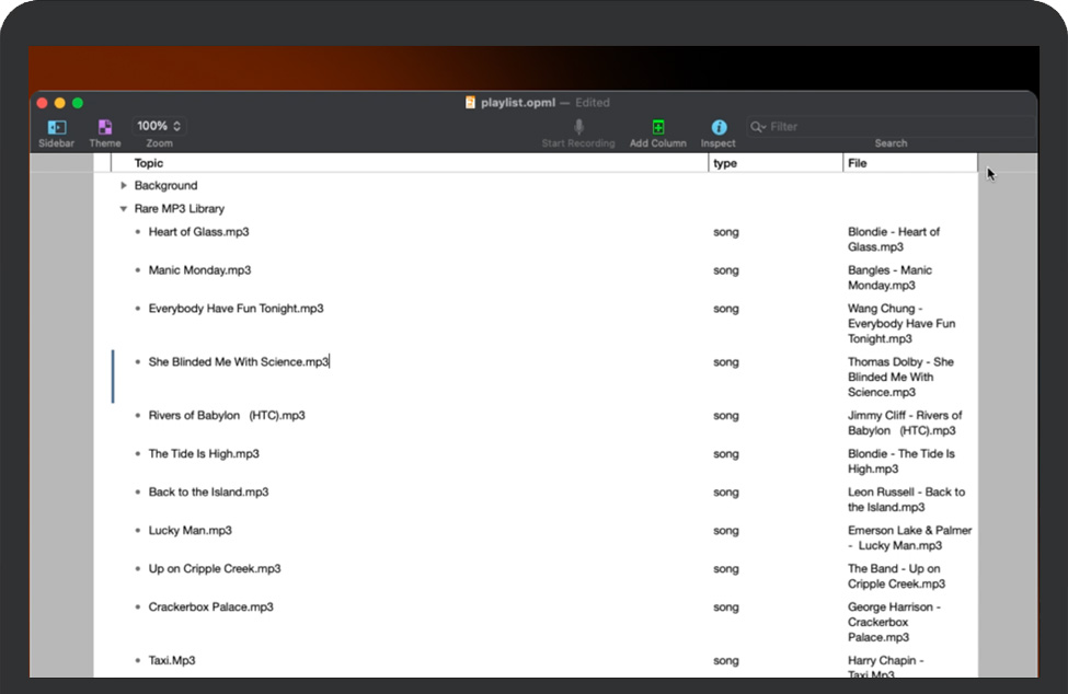 ·新文件格式:OmniOutliner 5 使用新的.ooutline格式:这是一种与第三方云同步平台更兼容的平面(zip 格式)文件。
