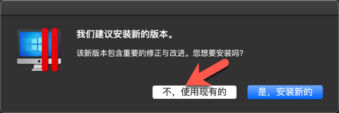 然后再提示建议安装新的版本,点击“不,使用现在有的”