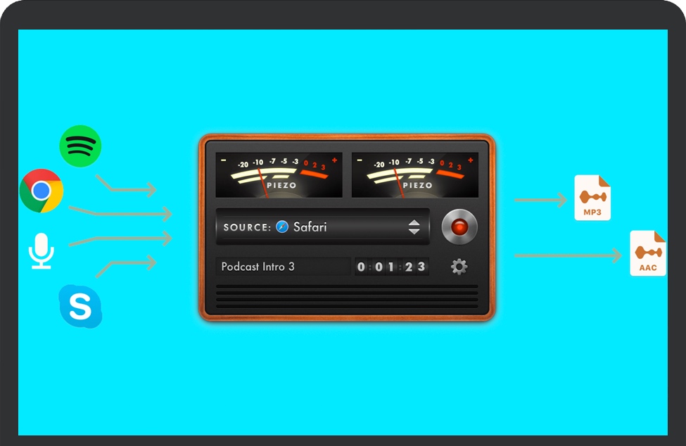 轻松录制播客 轻松从 Skype 和其他 VoIP 应用程序中进行压电记录。它甚至可以将音频保存到不同的频道以便于编辑。