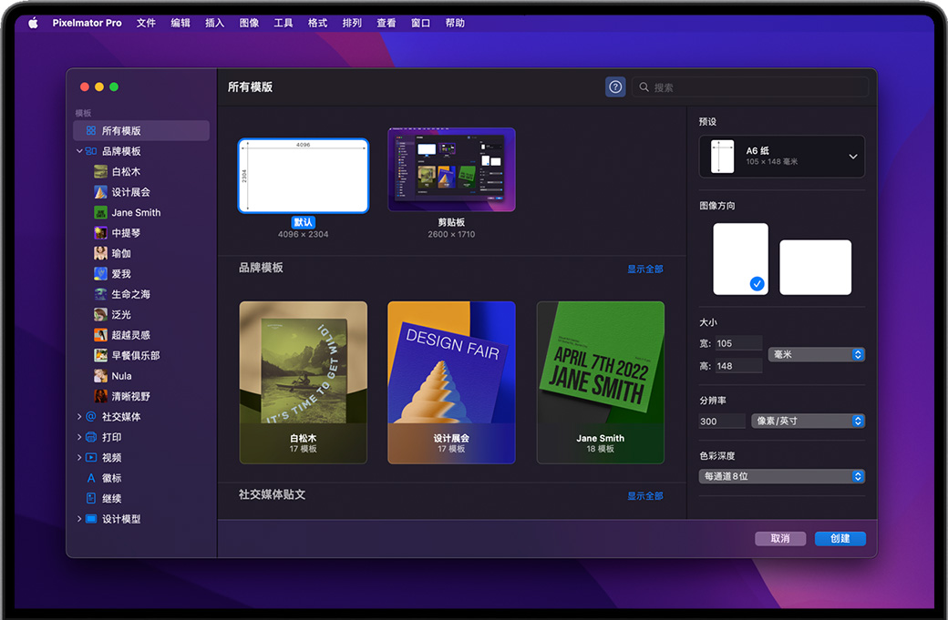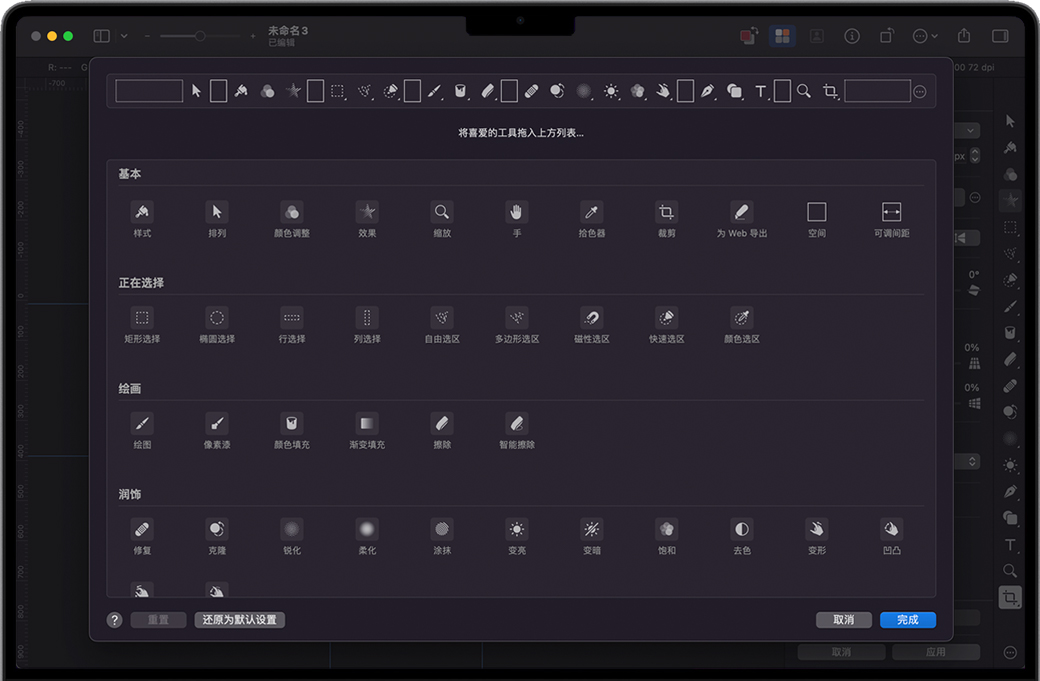 新界面极富现代感的单一窗口界面专为 Mac 上的图像编辑设计 直观的设计易于所有人使用——无论你初学者还是老司机。 Pixelmator Pro 提供明暗两种界面,无缝适应 macOS 的浅色及深色模式。
