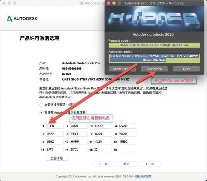 然后点击注册机的 “Generate” 按钮生成激活码,如下图。