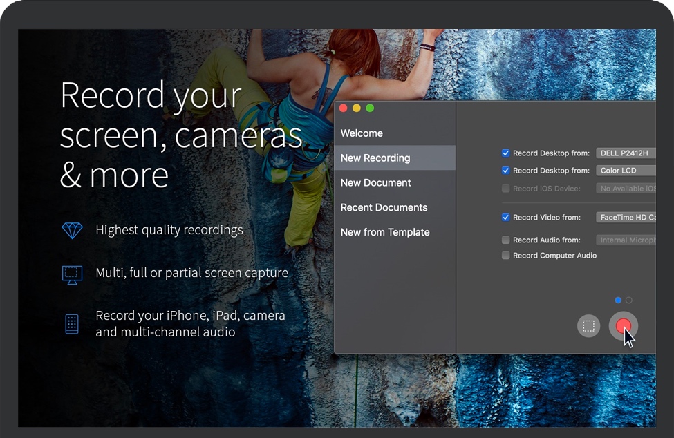 在您的计算机上或连接到您的计算机上几乎可以记录任何内容 - 是的,我们几乎是指任何内容。使用 ScreenFlow 10,您可以同时录制多个摄像头、麦克风和屏幕,再加上iPhones和iPads