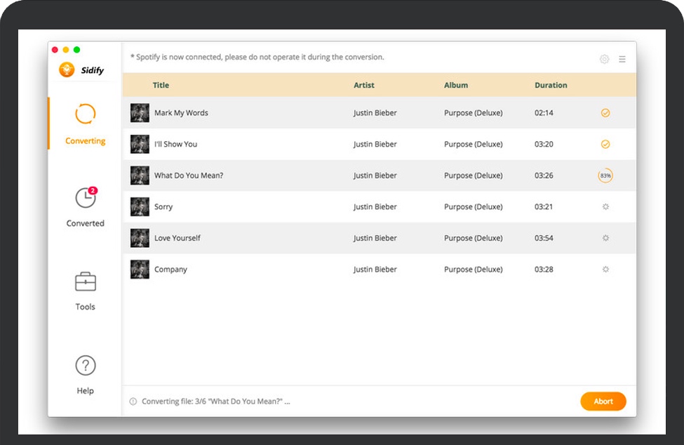 音乐流是愉快的!Sidify的Mac专用Spotify音乐转换器以100%的原始输出质量录制Spotify歌曲/播客。