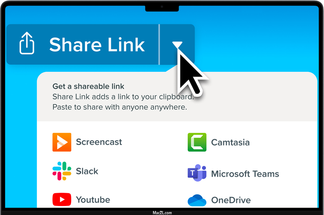 直接上传并共享到PowerPoint,Word,Excel,YouTube,Camtasia等,或直接创建指向屏幕抓取的链接并与任何人共享。