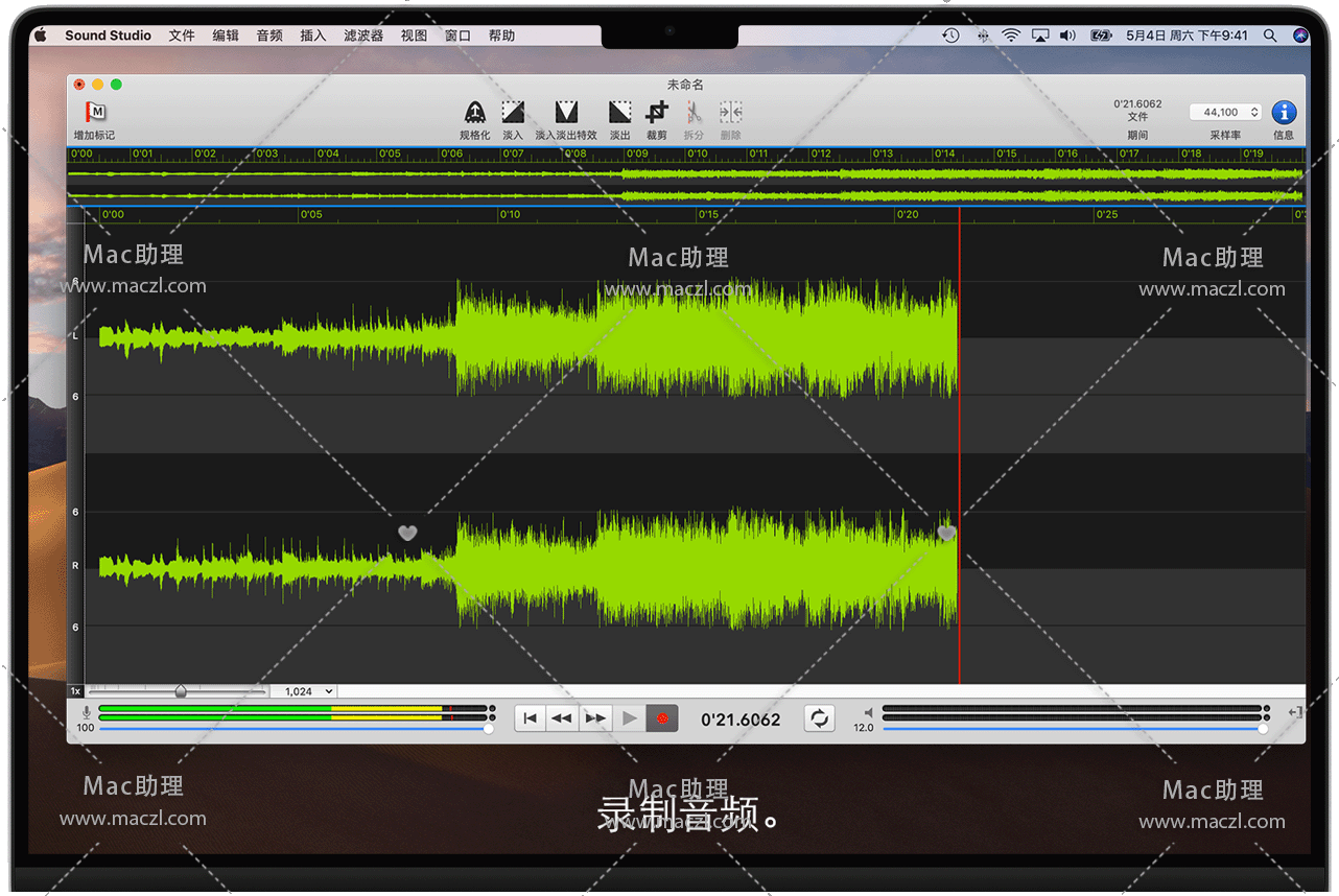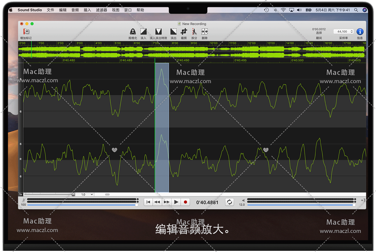 使用 Sound Studio,用户可录制专业的音频播客及其它音频对话。并以同等的高保真度录制和编辑对话、演讲、演示、音乐及其它音频。另外,通过这款高质量的程序能手,还可将文件保存成多种标准文件格式,如 AIFF、WAVE、MP3、MPEG-4 AAC、Ogg Vorbis 等。