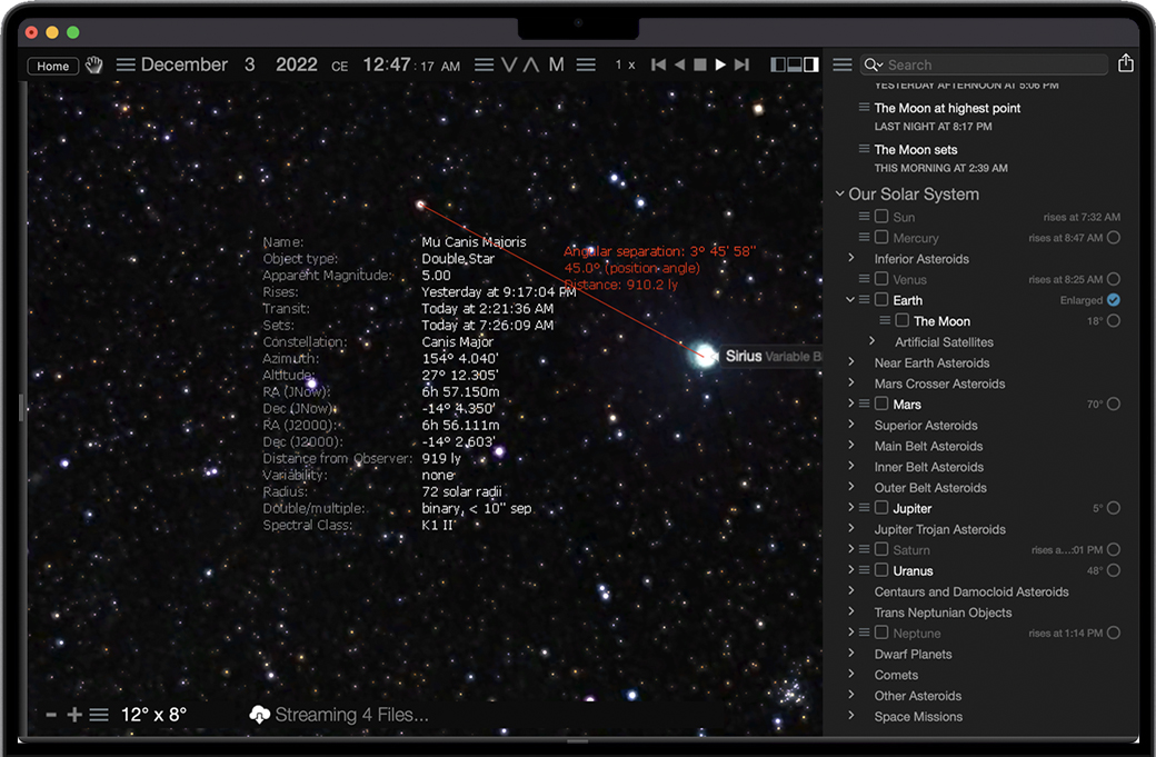 Starry Night for Mac 是一个完美的程序,适用于那些想要简单易懂的天文学和软件模拟起点的初学者。Starry Night Pro Plus功能齐全的旗舰程序,专为想要一流天文软件和望远镜控制体验的天文学家量身定制。Starry Night Pro Plus已经从内到外进行了重新调整,以最佳地满足现代业余天文学家的需求!凭借令人惊叹的新对象数据库、与云服务的难以置信的集成以及大量新的智能功能,Starry Night为您提供了前所未有的成功观察!