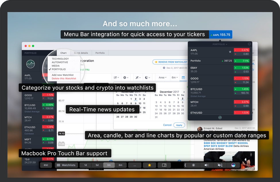 *当然,Stockfolio支持MacBook Pro触摸栏。:)
