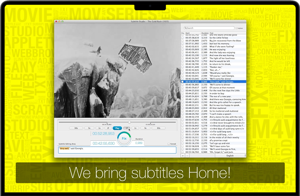 活到现在你讨厌同步不好的字幕吗? 你对所有的错别字感到恼火吗? 您是否对过早字幕的破坏者感到沮丧? 您是否在寻找一个同步良好的字幕上浪费了很多时间? 你害怕甚至创造你自己的吗? Subtitle Studio可以让那些噩梦消失! 容易…都在那里,使用起来很有趣: 点击save,你就完成了! 字幕工作室功能:完整的 M4V(还有 MP4、MOV)工作流程:提取、编辑、嵌入 支持其他格式:AVI、MKV(有限)等等…… 电影转换为 M4V(我们强烈建议在 M4V 中工作) 将您的字幕嵌入到新的完全优化的 M4V 文件中,适用于 AppleTV、iPhone、 iPad 和所有其他典型播放器 保存到 SRT 从 srt、sub、txt、ass、ssa 读取(使用内部网络搜索时为 zip) 导入 SubRip、SubViewer、MicroDVD、Sub Studio Alpha 文件 支持自定义编码,适用于 Windows 文件以及日文、西里尔文等。 创新的 Tap2Sync – 当你有文字,但没有时间 添加多种语言 添加相同语言的多个版本 字幕工作室为您整理字幕文件 直接搜索Open Subtitle(仅限 Subtitle Studio) 在 WebBrowser 中搜索许多站点的目录(仅限 Subtitle Studio) 从头开始创建您的字幕 修复第一行和最后一行,剩下的交给字幕工作室 字幕移位 或者修复单个字幕 直接字幕文本编辑 键盘快速编辑 电影免费编辑 搜索字幕文本 轻松搜索和替换功能 删除不需要的行 添加字幕行(想想缺少的场景等) 添加任意数量的字幕语言