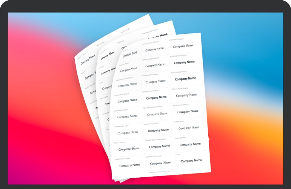 与您的客户、老板和同事分享您精心挑选的字体集的精美 PDF。或者将您最喜欢的字体打印到纸上,然后将其挂在您的床上。