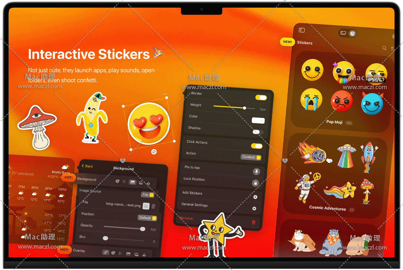 使用 WidgetWall 将您最常用的工具放在桌面上,即可快速访问各种 Mac 应用。添加多个时钟和天气小部件、Mac 统计信息等等。