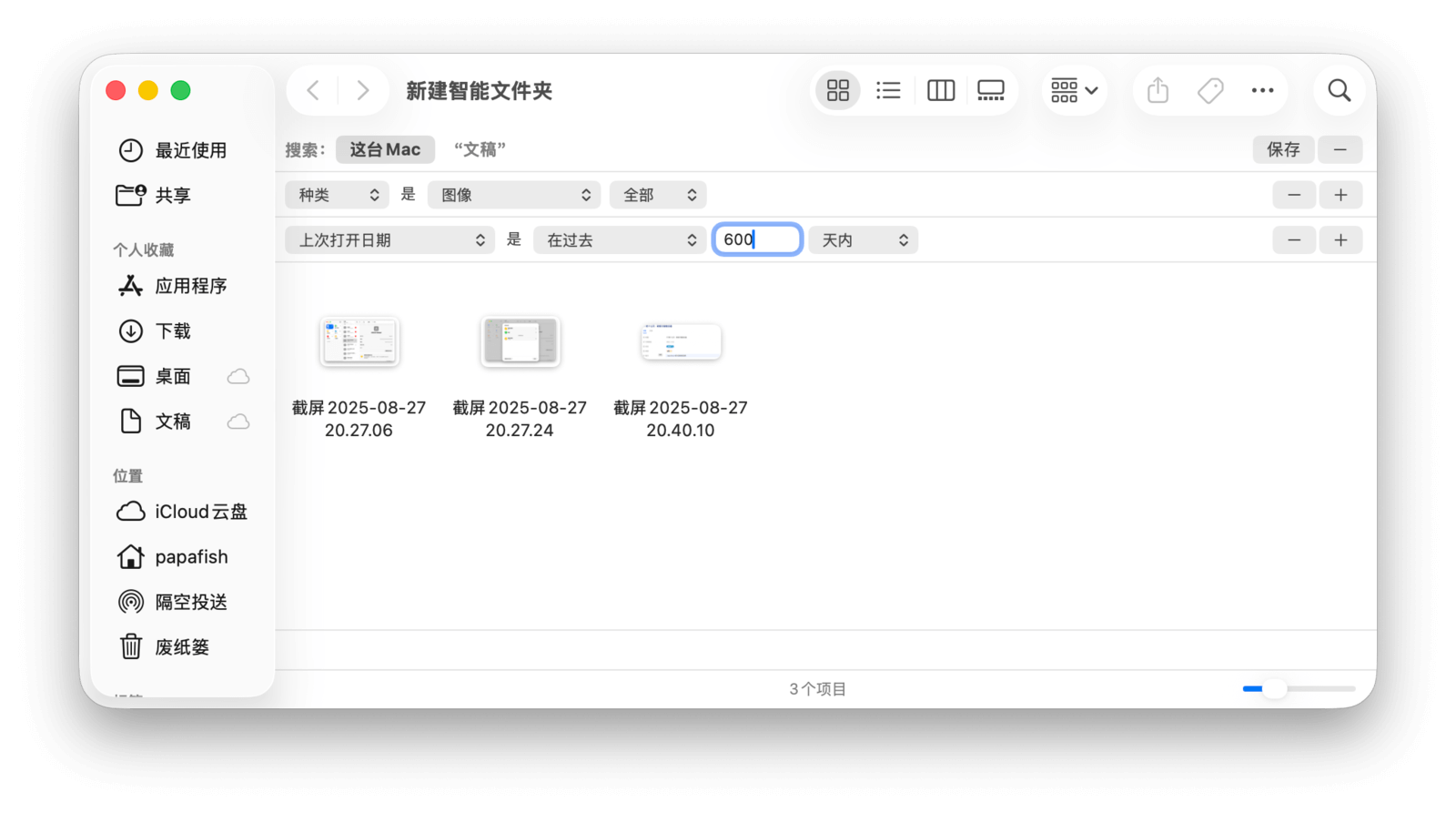 智能文件夹能自动聚合电脑中所有符合条件的项目,但它本身不占用实际磁盘空间,里面的文件仍在原位。边栏中的「最近使用」其实也是一个智能文件夹,方便用户快速找到最近打开过的文件。