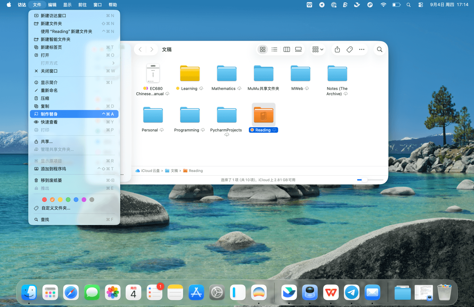 「访达」的许多操作使用频率都很高,熟练掌握快捷键能显著提升效率。你可以在「访达」的菜单栏中学习各项操作的快捷键,它们都标注在对应选项的右侧。