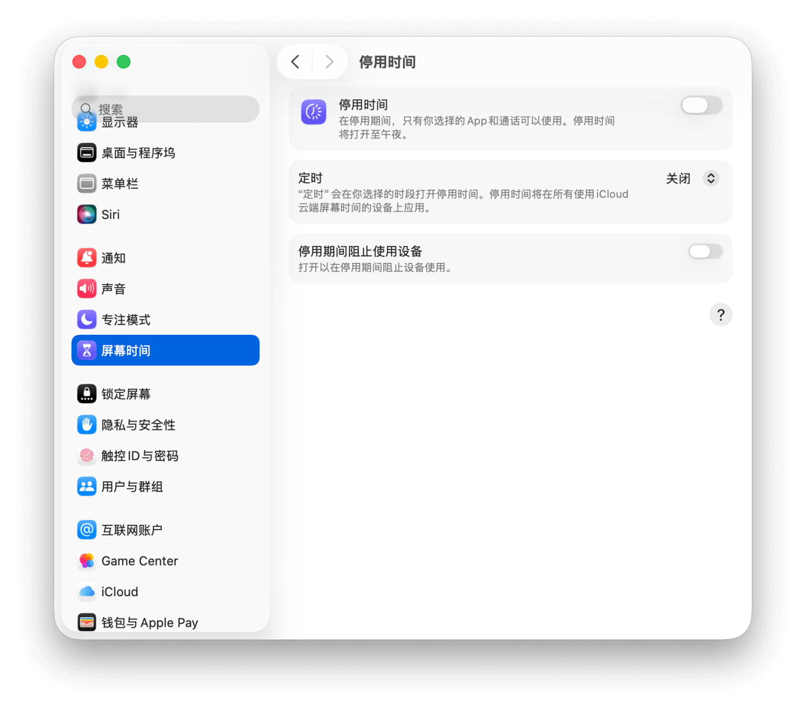 了解屏幕使用习惯后,你或许想控制每天花在 Mac 上的时间。「屏幕使用时间」为此提供了几样趁手的工具。