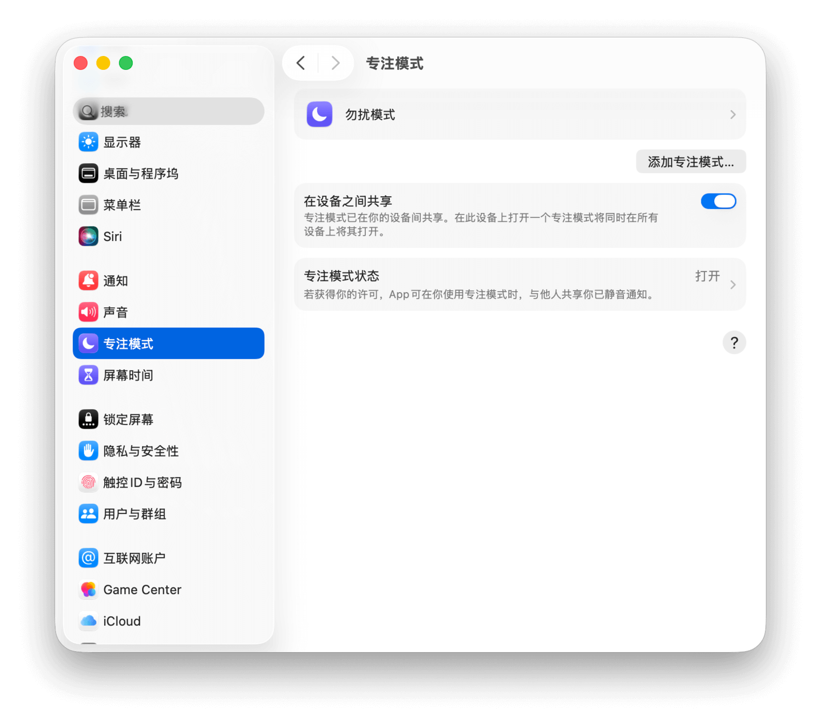 如果你不希望专注模式在设备间同步,可以在以下位置关闭共享: