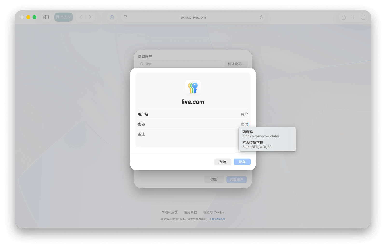 得益于密码 app 与系统的深度结合,许多网站和应用都支持直接从系统调取登录信息。当你第一次登录账户时,可以选择在密码 app 中保存账号密码。下次登录时,在系统弹出的菜单中选择先前保存的账户就能实现自动填充,非常方便。